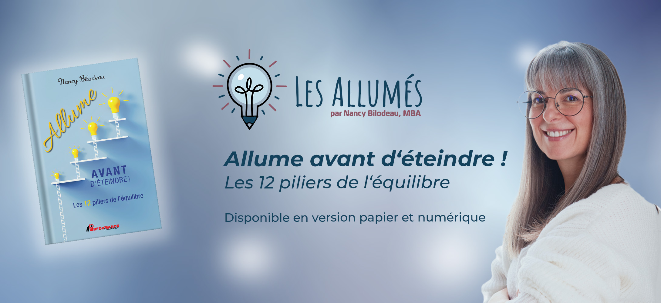 Vous pouvez suivre Nancy sur Facebook, LinkedIn et YouTube. Vous pouvez aussi joindre le groupe Facebook LesAllumés. Vous pouvez écrire à Nancy directement à nancy@nancybilodeau.com ou compléter le formulaire suivant.